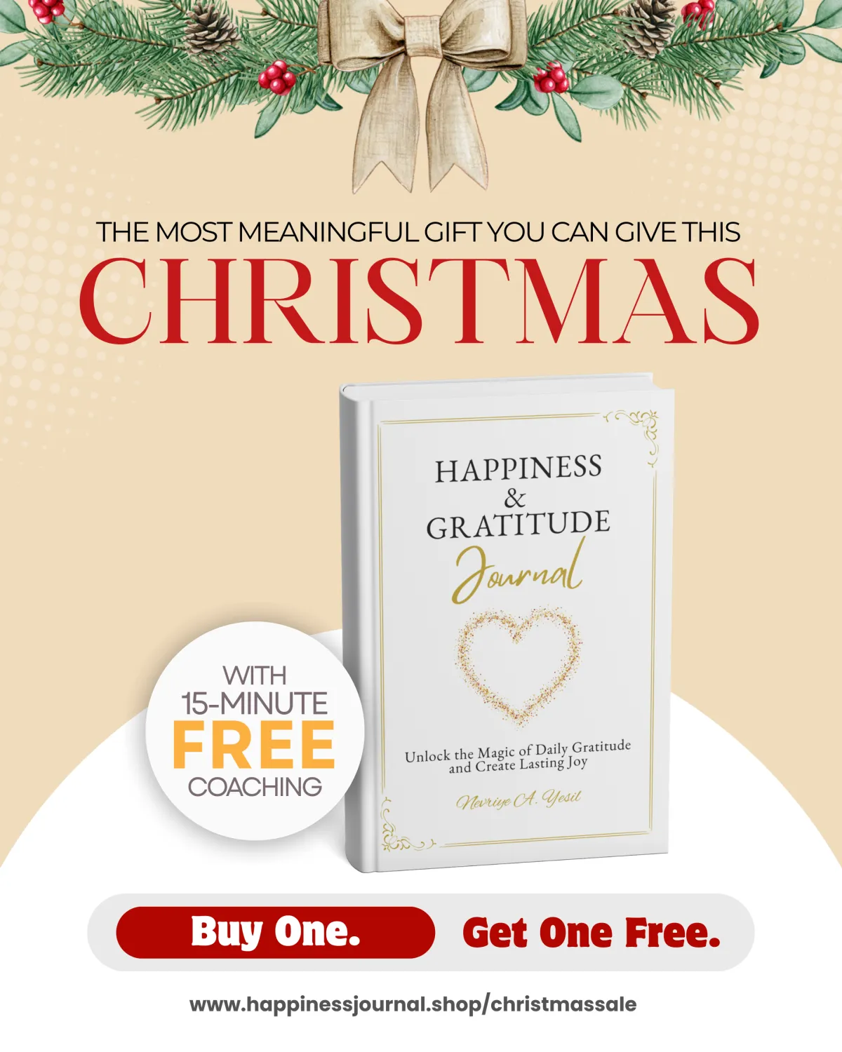 To make the holidays even brighter, enjoy our Christmas Special: Buy One, Get One FREE, plus receive a FREE 15-minute Happiness Coaching Session with international author and coach Nevriye Yesil.